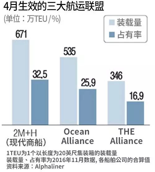 全球航运市场4月1日起正式开启三大航运联盟格局(2M+现代、Ocean、THE Alliance),此举预计导致韩国遭遇“韩进海运”航线网空窗、物流量减少、运费骤减等打击。